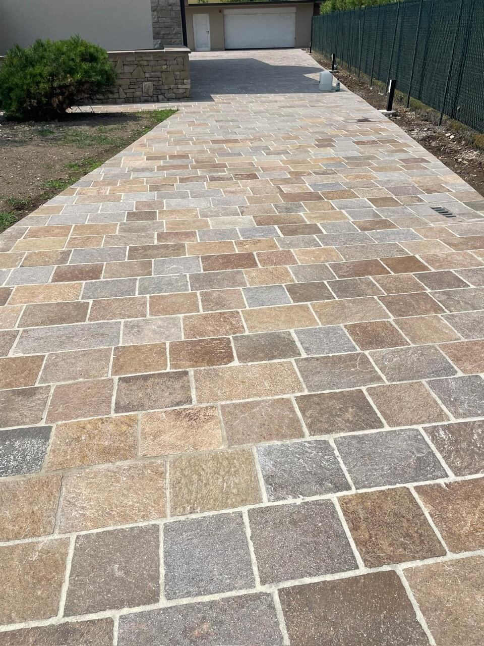 Dal punto di vista visivo, le piastrelle di porfido regalano un’estetica naturale e raffinata. La vasta gamma di colori, che spazia dalle tonalità di grigio alle sfumature di rosso e di marrone, permette di creare combinazioni armoniose e personalizzate, ideali per adattarsi a diversi stili architettonici. Si inseriscono perfettamente in ambienti sia classici che moderni, dai giardini ai vialetti, dalle terrazze agli spazi pubblici, contribuendo a valorizzare la qualità estetica degli esterni.